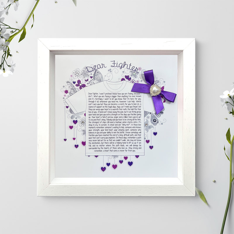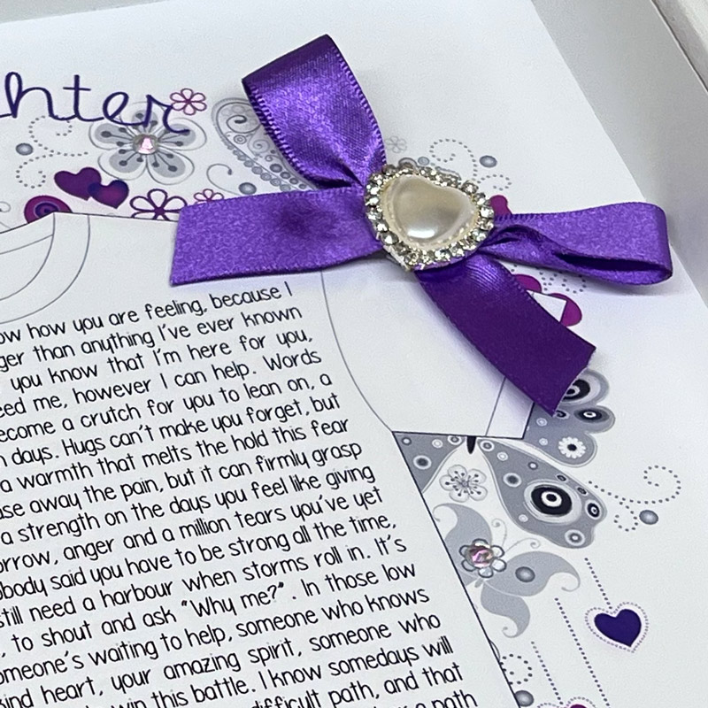 Sentimental Printed Frame to comfort those who may be suffering from long-term illness. High Quality print with satin ribbon bow and heart shaped pearl diamante embellishment presented in a wooden frame that is handmade in Ireland.