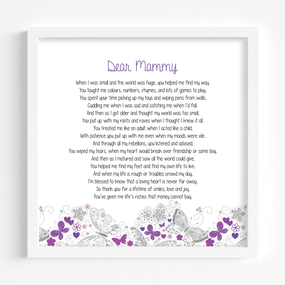 Sentimental Printed Frame to a mother from an adult daughter. Our most popular verses are now available in this alternative design in a white MDF frame.