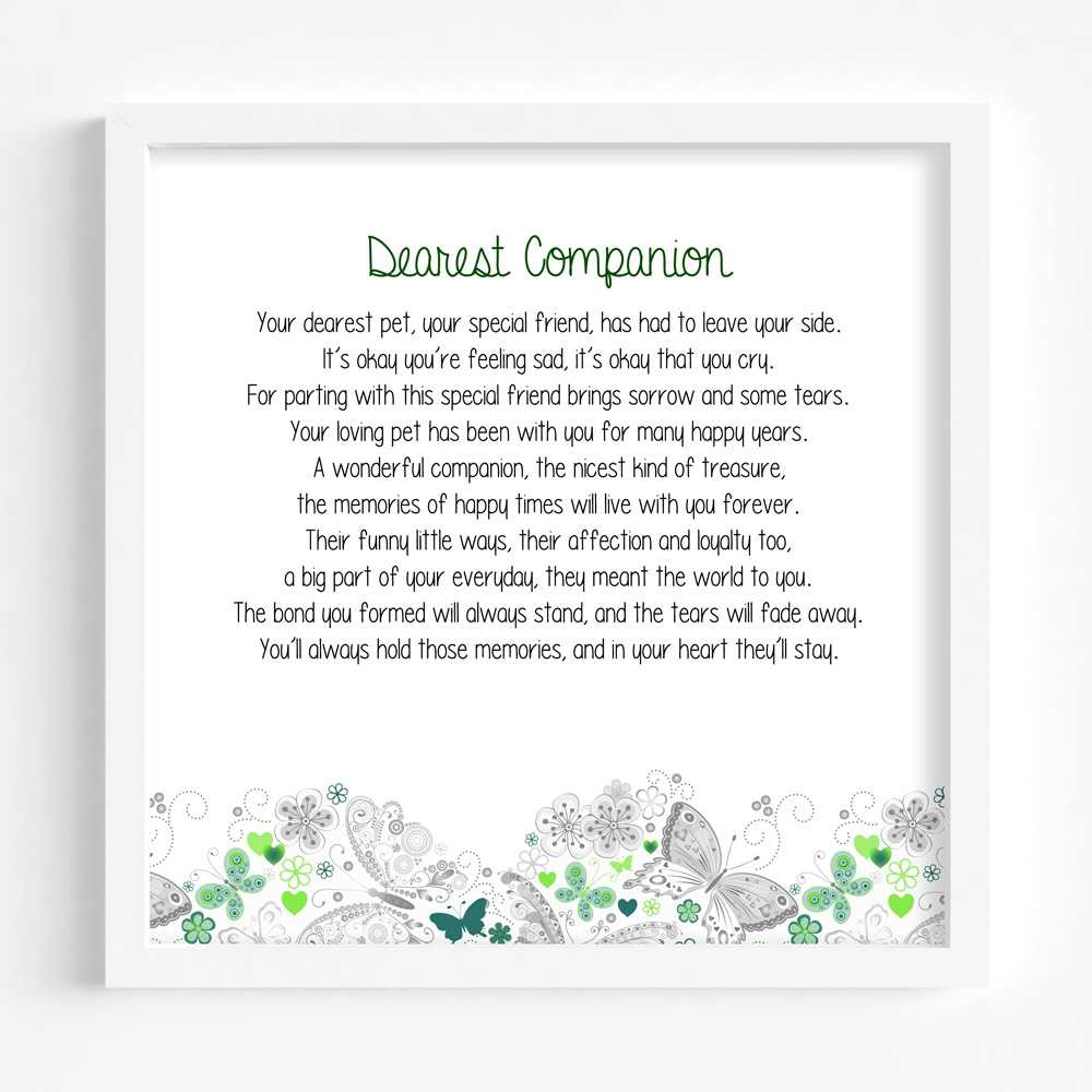 Sentimental Framed Gift to comfort those who may have suffered the loss of a pet. Our most popular verses are now available in this alternative design in a white MDF frame.