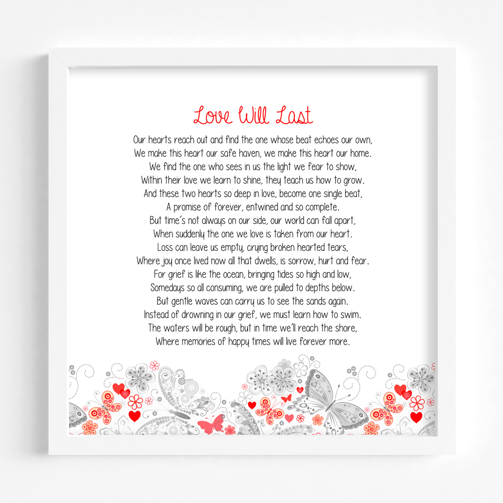 Sentimental Framed Gift to comfort those who may have lost a partner. Our most popular verses are now available in this alternative design in a white MDF frame.