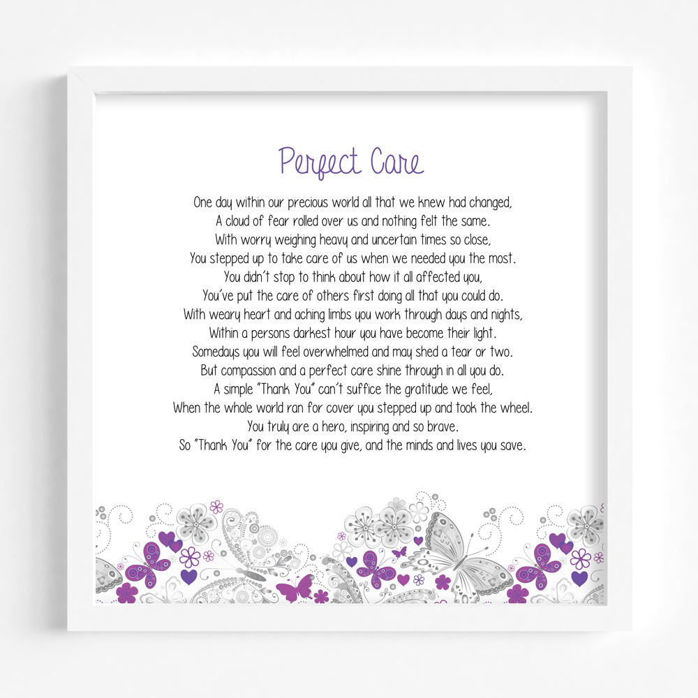 Sentimental Printed Frame for the many Care Workers who do fantastic work. This sensitive verse expresses gratitude to those who are providing care. Our most popular verses are now available in this alternative design in a white MDF frame.