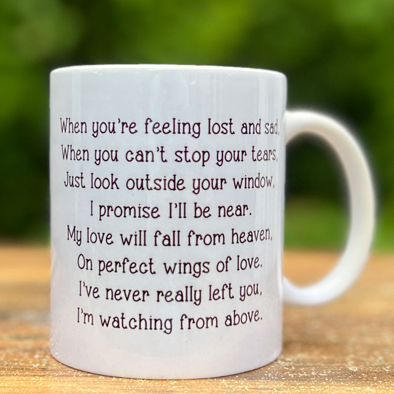 This mug features an image of a robin on one side and a verse on the opposite side.