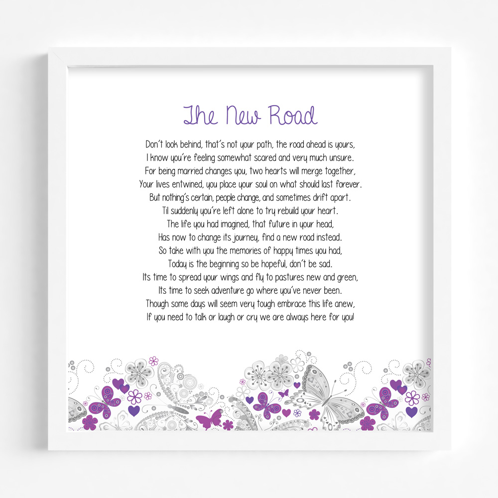Sentimental Framed Gift suitable for someone going through divorce. Our most popular verses are now available in this alternative design in a white MDF frame.