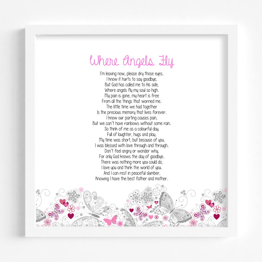 Sentimental Framed Gift to comfort those who may have suffered the loss of a child. Our most popular verses are now available in this alternative design in a white MDF frame.